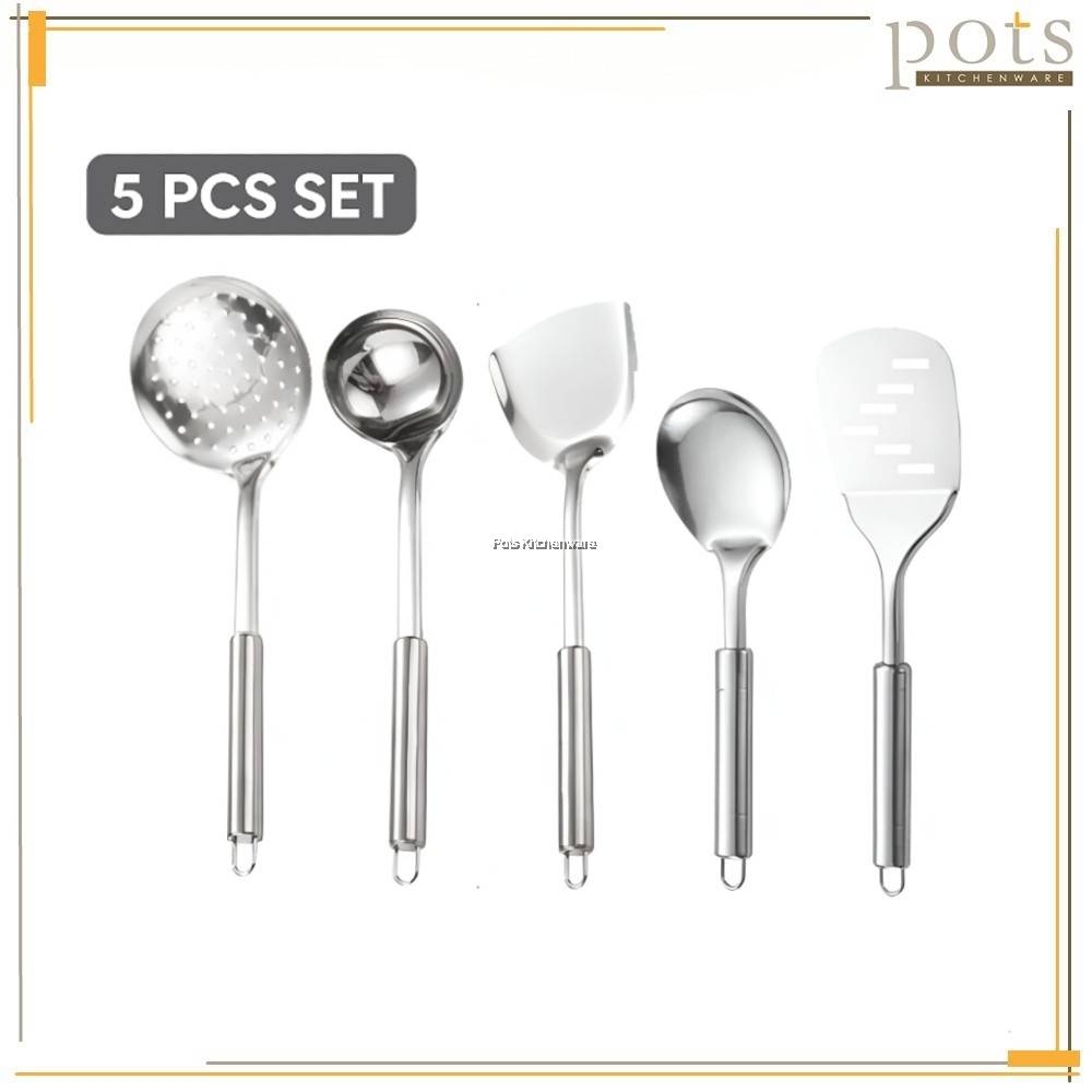 ✨ 5 PCS Kitchen Tool Set (Serving Spoon, Ladle, Slotted Turner, Asian Turner, Skimmer) ✨