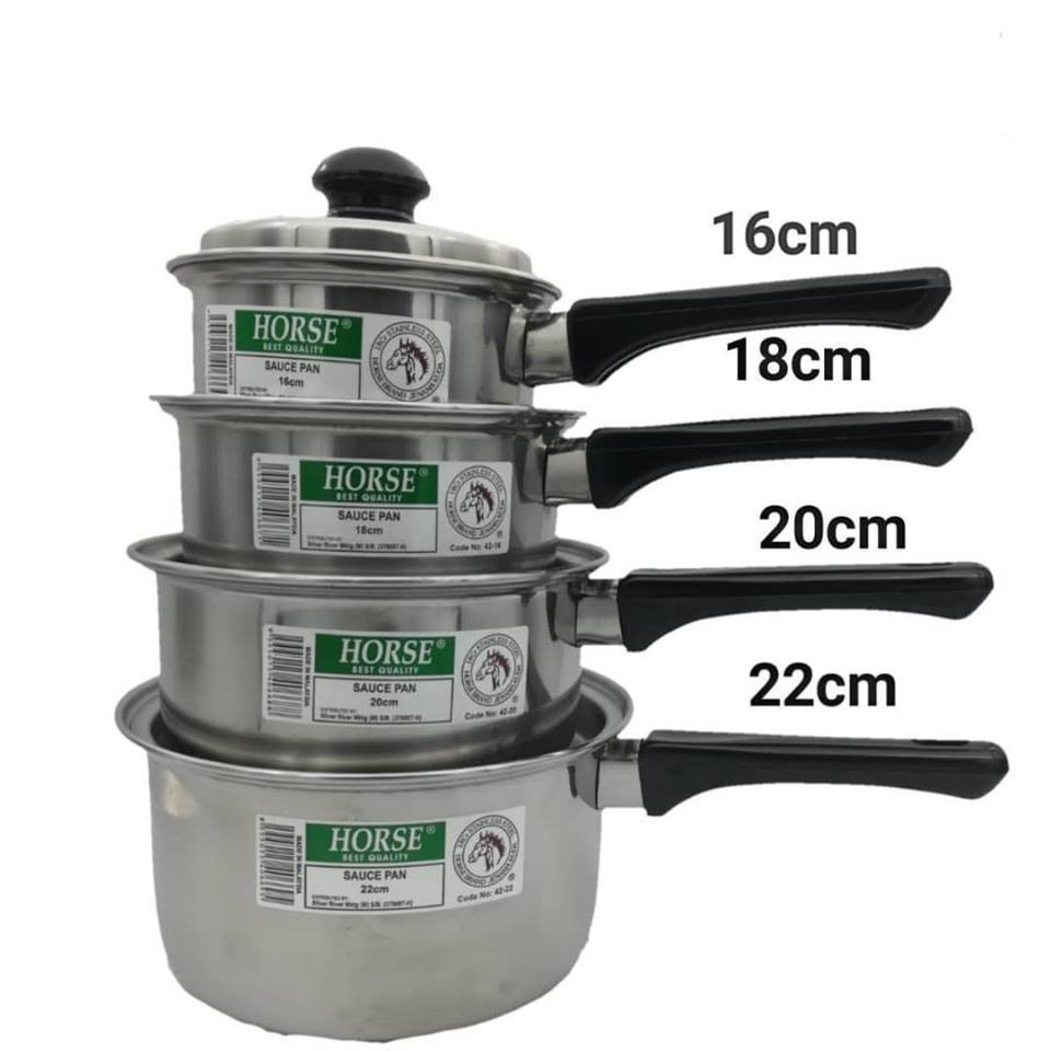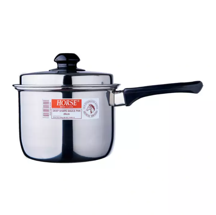 1 x Horse Stainless Steel Grade 18.8 Deep Sauce Pan with Handle (16cm/18cm/20cm/22cm)