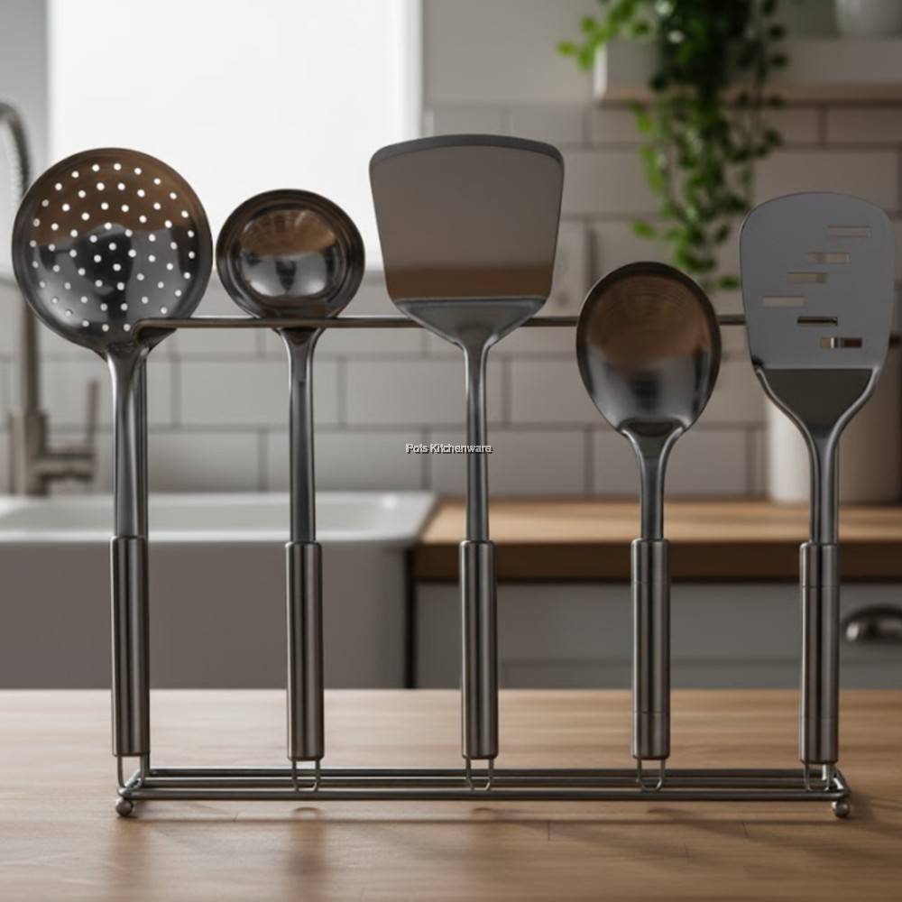 - Complete 5-Piece Kitchen Cooking Set – Includes serving spoon, ladle, slotted turner, Asian turner, and skimmer; perfect for all your kitchen cooking needs.