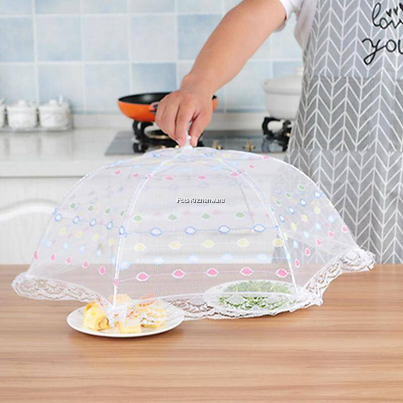 1 x Foldable Breathable Mesh Lace Metal Hexagon Rectangle Umbrella Food Cover Tudung Saji 菜盖蕾丝菜罩
