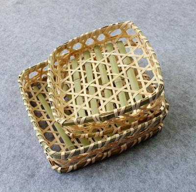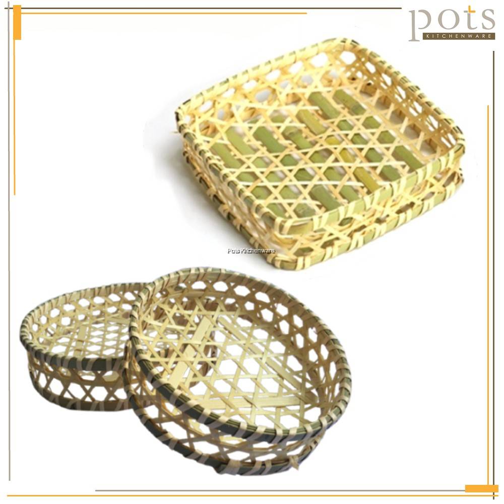 1 x Handmade Bamboo Square Round Serving Wicker Basket Woven Snack Tray Steam Basket