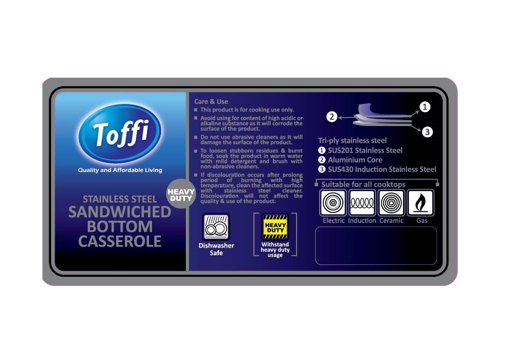 Toffi Stainless Steel Heavy Duty Sandwiched Bottom Stockpot Saucepot with Lid Periuk Sup 不锈钢汤锅 (12L/14L/21L/33L/36L) - C44204520