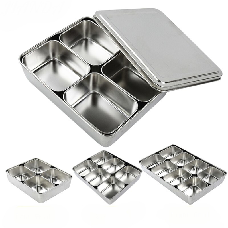 1 x Toffi Stainless Steel Compartment Condiment Spices Holder Dispenser Seasoning Box Container with Cover Bekas Rempah 不锈钢调味料收纳