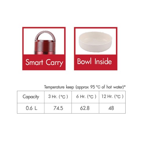 - Keep hot or cold for 3 to 12 hours (Temperature keep approx 95°C of hot water)